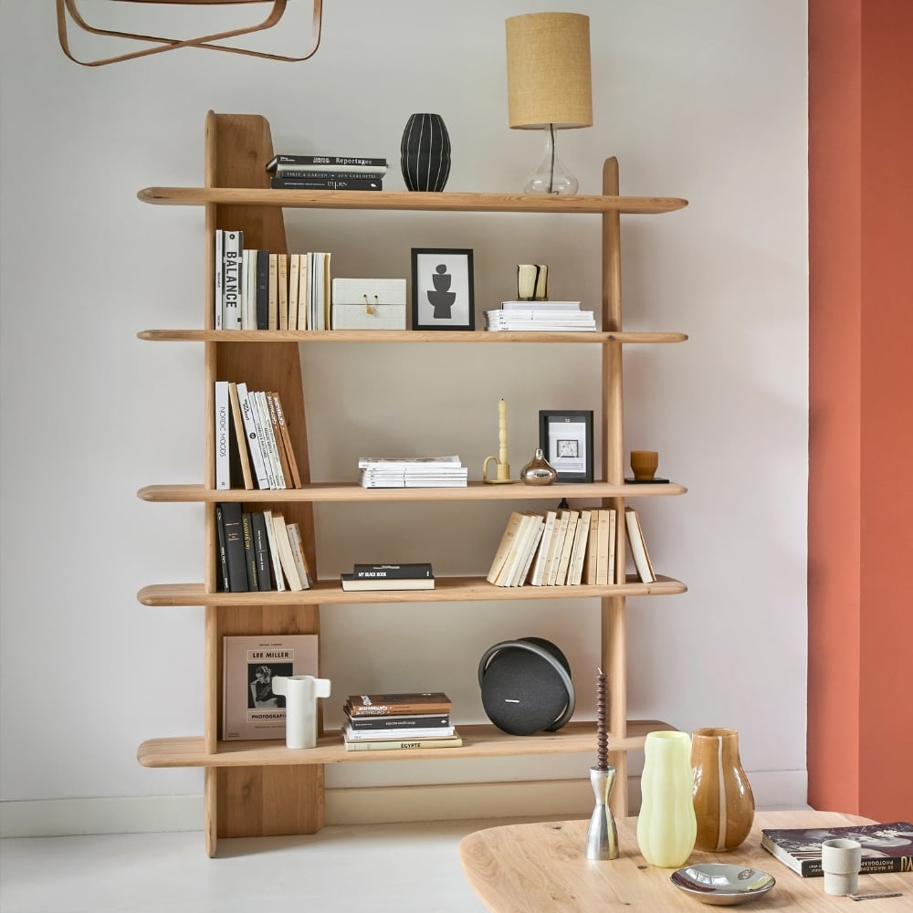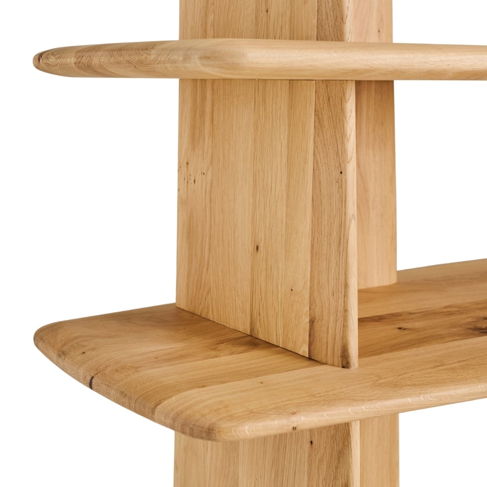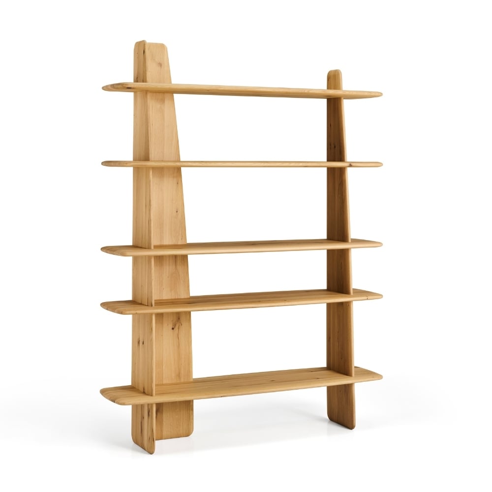 5 étagères – Pieds, montants et étagères : chêne massif – Finition unique : Chêne Organic.