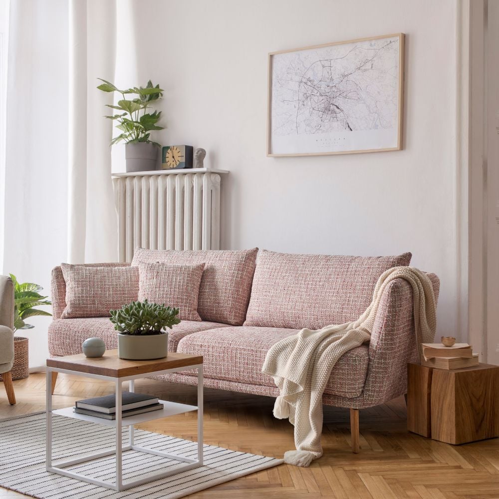 La douceur s’invite au salon avec le canapé PENELOPE et ses lignes arrondies. Plus qu’un simple meuble, ce canapé est un véritable cocon où il fait bon se lover. Revêtu ici d’un tissu effet tweed, il offre un toucher agréable et une esthétique intemporelle. Mais le canapé PENELOPE ne se limite pas au tweed : un large choix de tissus et de coloris est disponible pour s’adapter à tous les intérieurs et toutes les envies. Le piétement en bois massif souligne le caractère naturel et authentique de ce canapé et pour une esthétique plus contemporaine, des pieds en métal sont également disponibles. Pour un salon harmonieux, associez ce canapé avec le fauteuil PENELOPE.