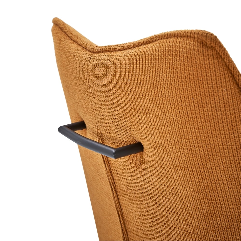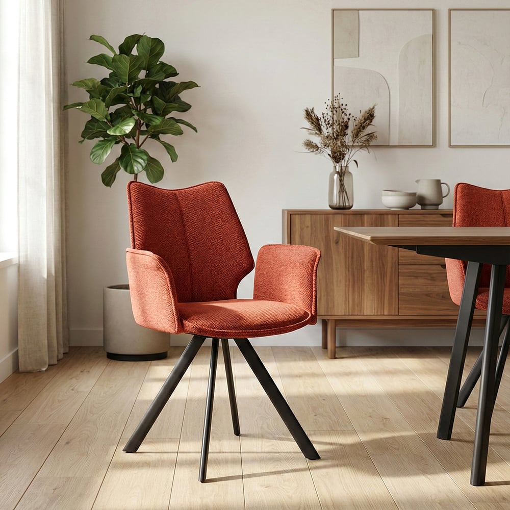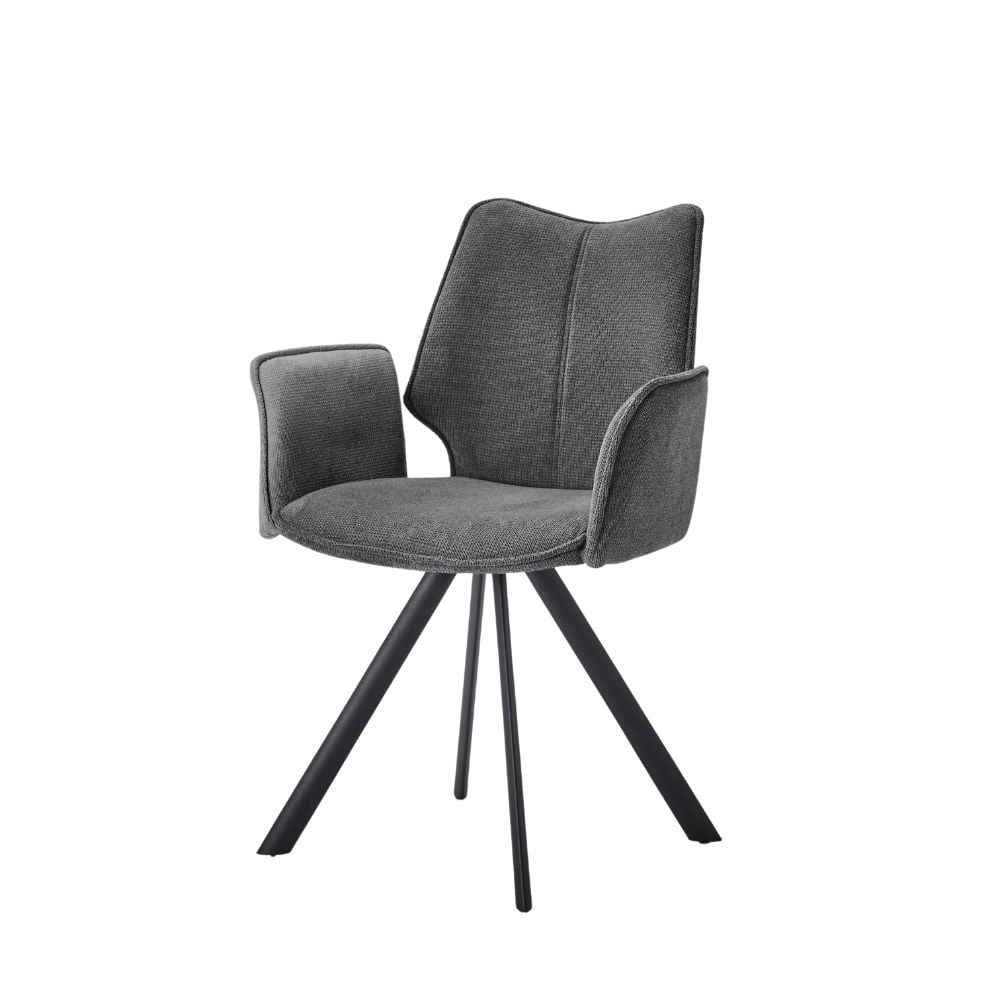 Avec la chaise avec accoudoirs SANDRA, le confort rencontre le design. Son assise pivotante en tissu, déclinée en 6 coloris actuels, s’adapte à toutes vos envies et vous garantit un confort optimal. Son piétement en métal noir lui confère un look contemporain et aérien, tandis que la poignée métallique au dos lui ajoute une touche d’originalité. Parfaite pour twister votre salle à manger !