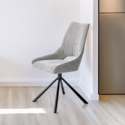 Véritable pièce de design moderne, la chaise séjour CALLY se caractérise par 4 pieds fins en métal noir, une assise bien garnie et un dossier à la découpe originale. Disponible en 6 coloris actuels, cette chaise pivotante sera une alliée pour un confort durable autour de la table de repas, et facilitera vos mouvements.
