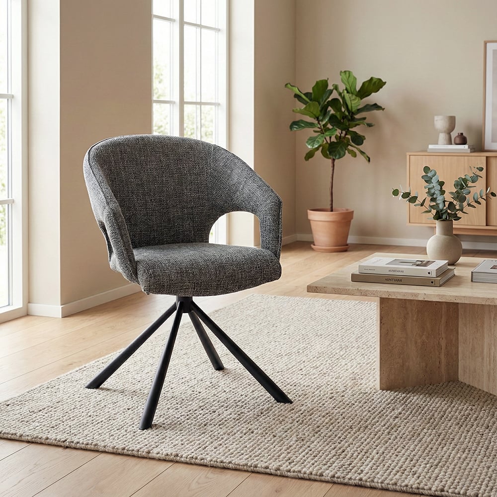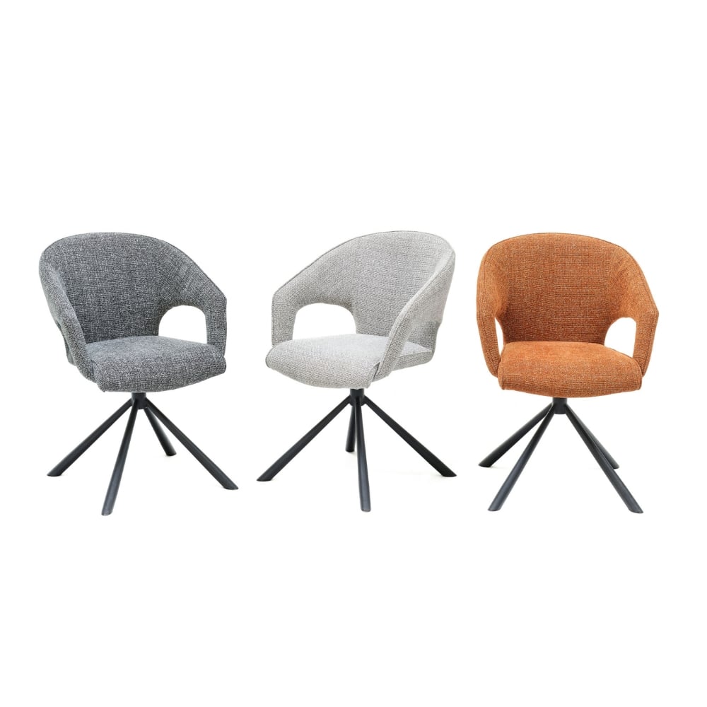 Les jolies rondeurs de la chaise pivotante EVE sont la première chose que l’on remarque chez elle. Originale dans sa conception, elle offre des accoudoirs subtilement intégrés dans le prolongement de son dossier pour une forme de chaise avec accoudoirs arrondie et harmonieuse. Entre rembourrage confortable et système de rotation à 180°, cette chaise séjour moderne vous permettra une aisance dans vos gestes et apportera de la douceur dans votre intérieur.