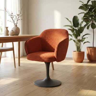Pour un séjour au style indus ou un bureau ambiance aviateur, la chaise JAKARTA est un must have. À mi-chemin entre la chaise et le fauteuil, ses accoudoirs et son système pivotant offrent un confort indéniable, et une identité affirmée. Ses lignes sobres et son piètement en étoile lui donne un look moderne, adroitement contrebalancé par son revêtement beige et ses coutures alignées. À choisir ou combiner parmi les coloris beige, marron et anthracite.