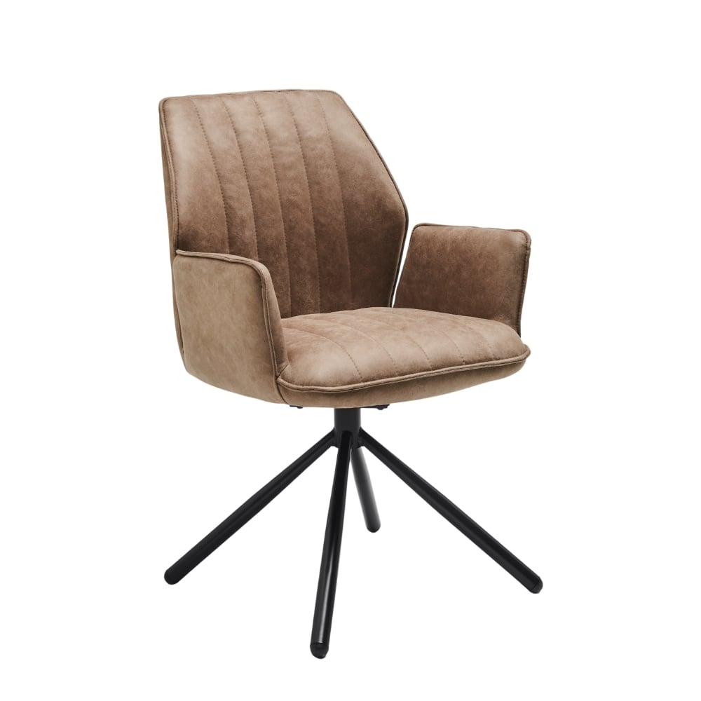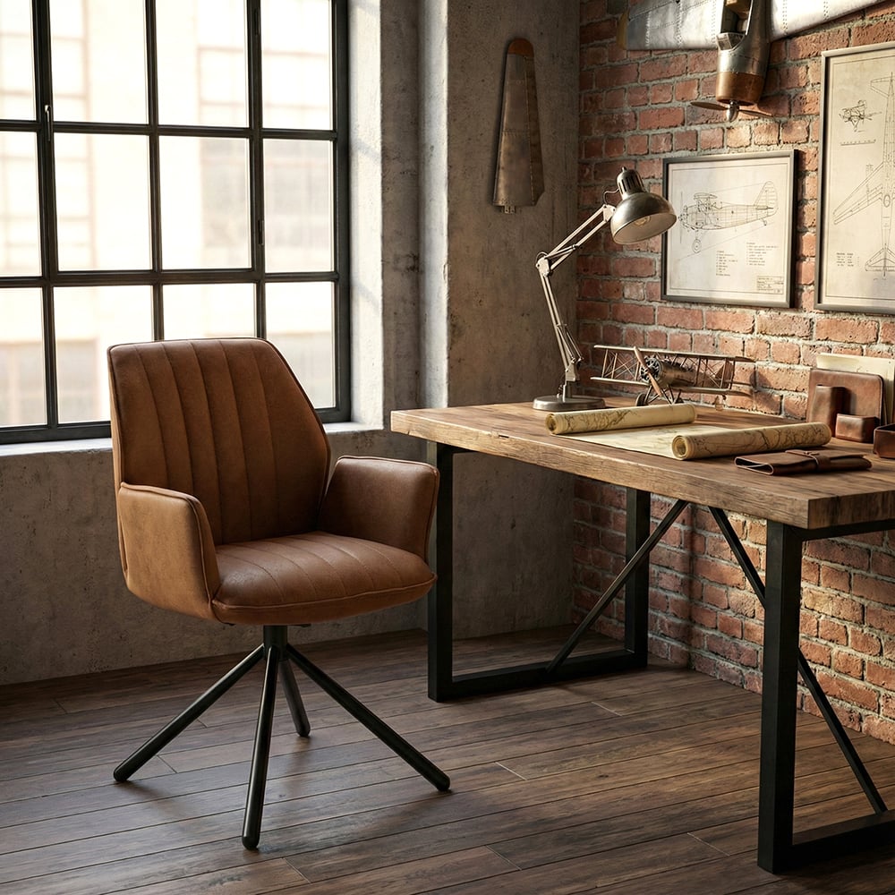 Pour un séjour au style indus ou un bureau ambiance aviateur, la chaise JAKARTA est un must have. À mi-chemin entre la chaise et le fauteuil, ses accoudoirs et son système pivotant offrent un confort indéniable, et une identité affirmée. Ses lignes sobres et son piètement en étoile lui donne un look moderne, adroitement contrebalancé par son revêtement beige et ses coutures alignées. À choisir ou combiner parmi les coloris beige, marron et anthracite.