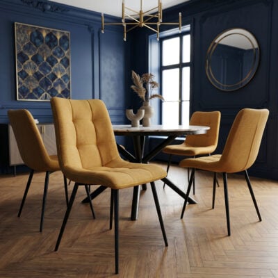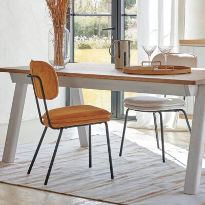 Contemporaine et tendance avec son tissu velours brun doré, la chaise séjour XENA accompagne l’ensemble du dos et offre un design actuel et épuré.