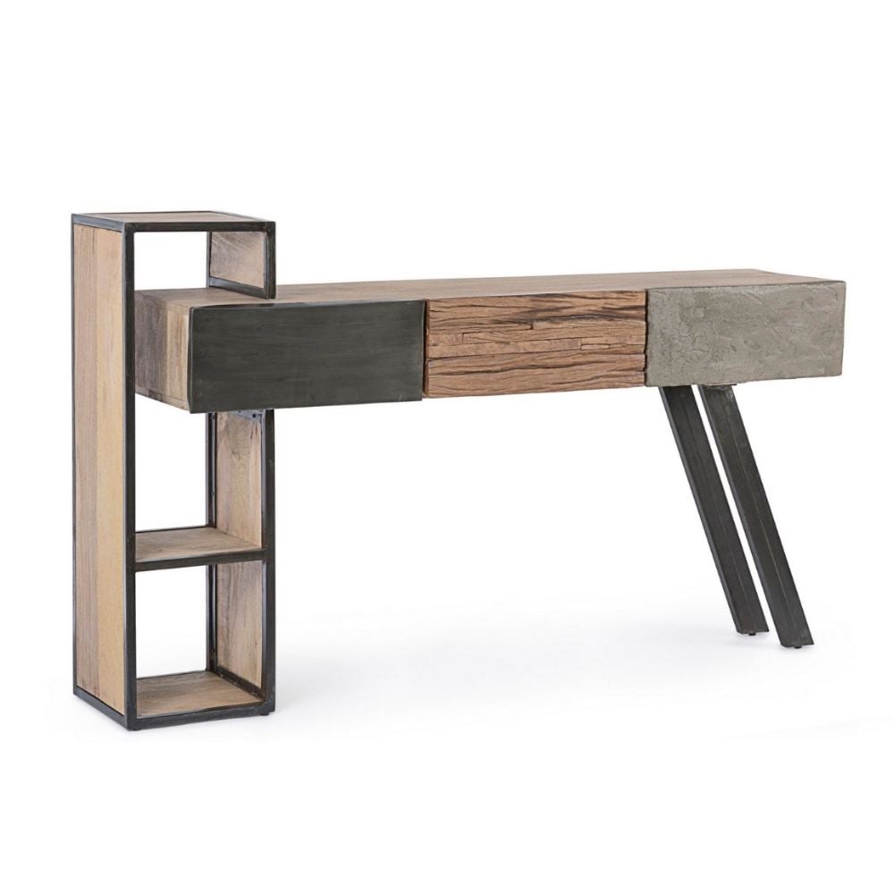 Laissez-vous séduire par le charme et l’originalité de la console MARTIGUES ! Très pratique grâce à ses 3 tiroirs et ses niches de rangement, ce meuble console se distingue grâce à son design atypique qui mêle les formes et les matières pour un effet authentique très réussi.