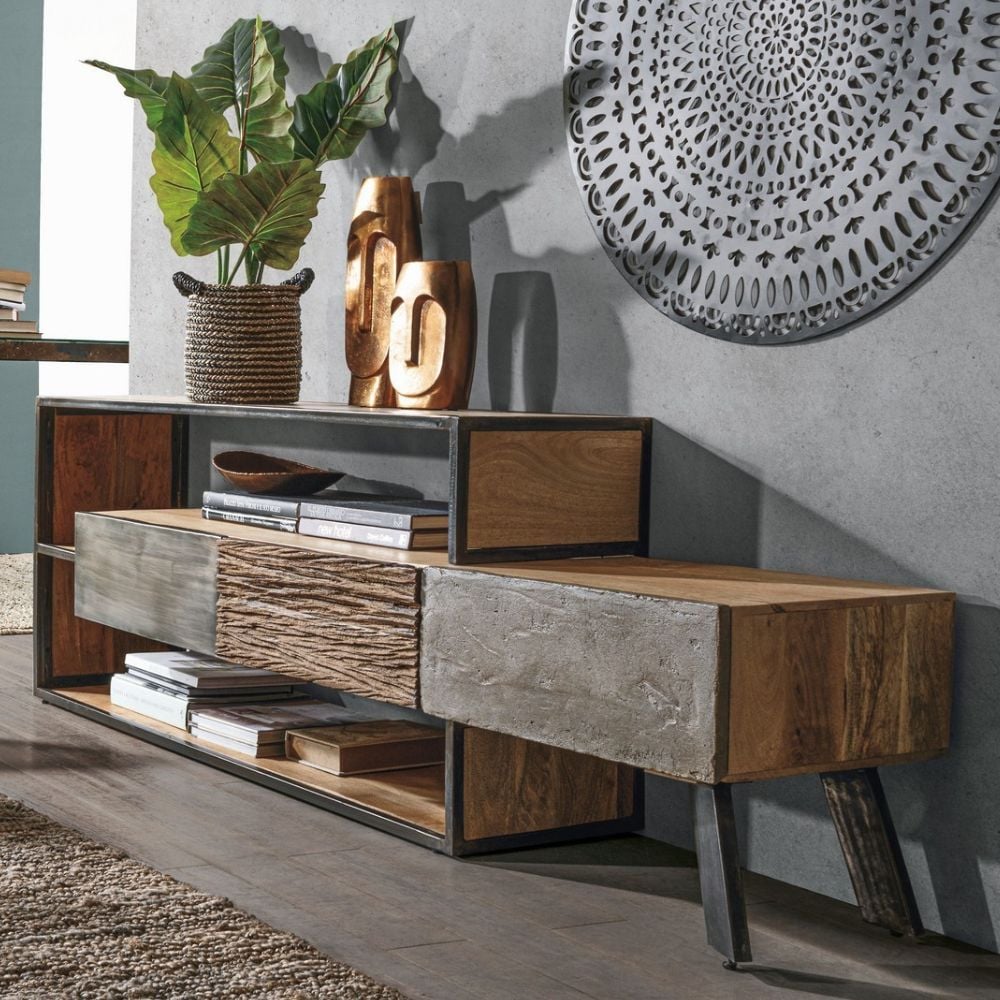 Affirmez votre singularité avec le meuble TV MARTIGUES ! D’un design atypique et étonnant, ce meuble unique attirera tous les regards dans votre salon. Vous craquerez pour ses 3 tiroirs à l’aspect différent qui vous permettront de ranger vos affaires avec élégance.