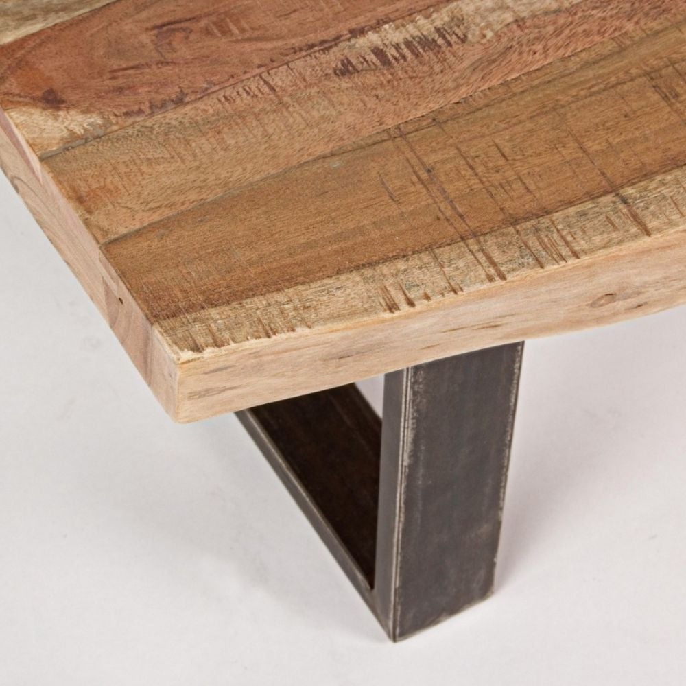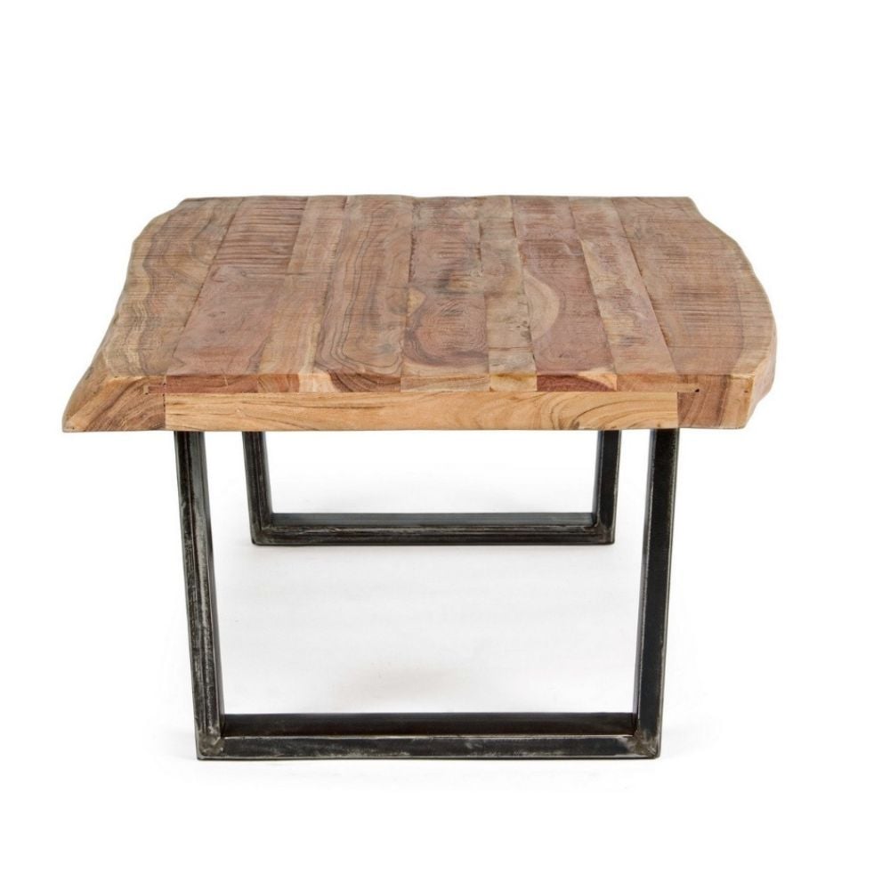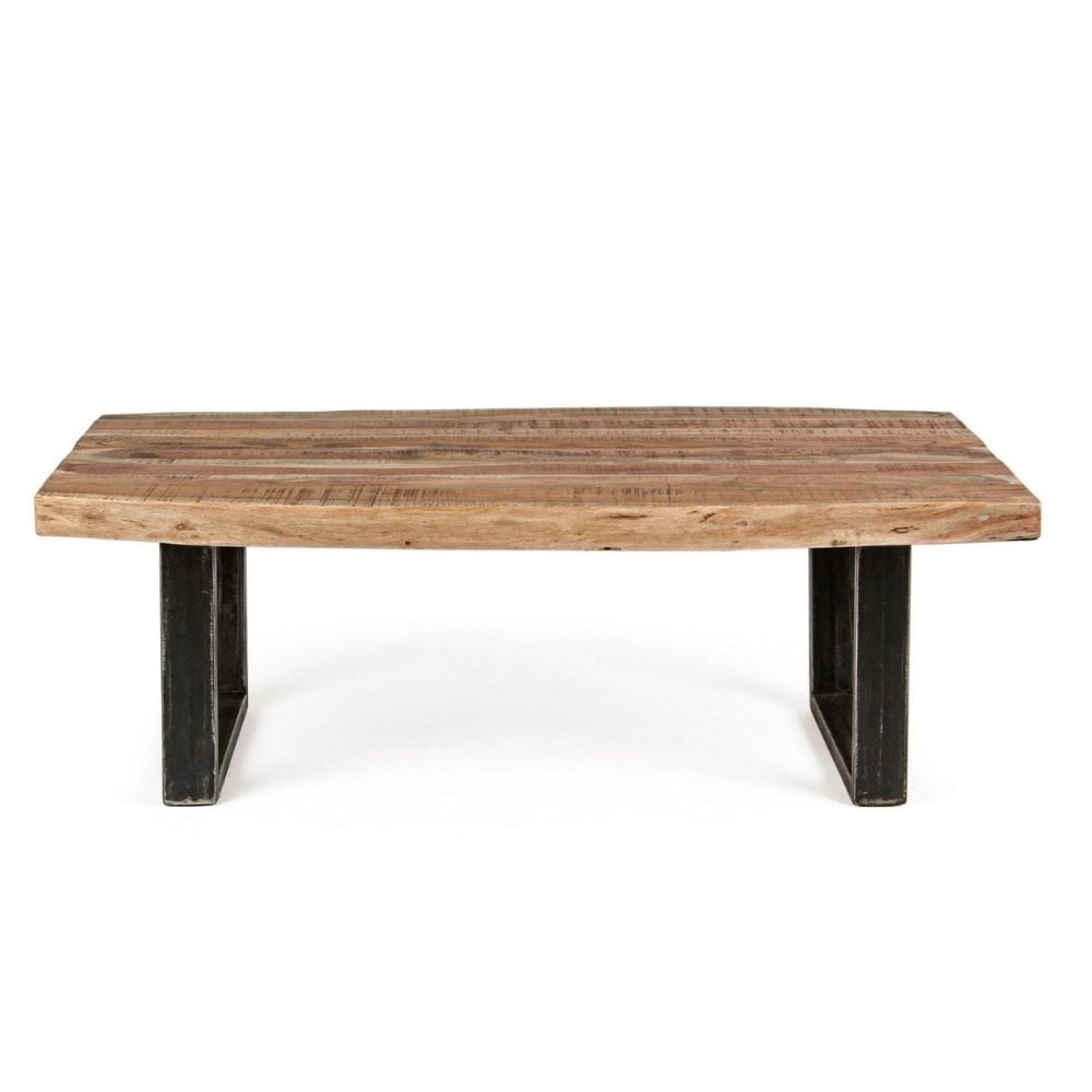 D’un design brut très tendance, la table basse ELMER donnera à votre salon un esprit nature ! L’alliance d’un plateau en bois d’acacia et d’un piètement luge en métal au fini patiné lui confère un look authentique qui s’intégrera aussi bien dans une décoration industrielle que dans un intérieur plus bohème.