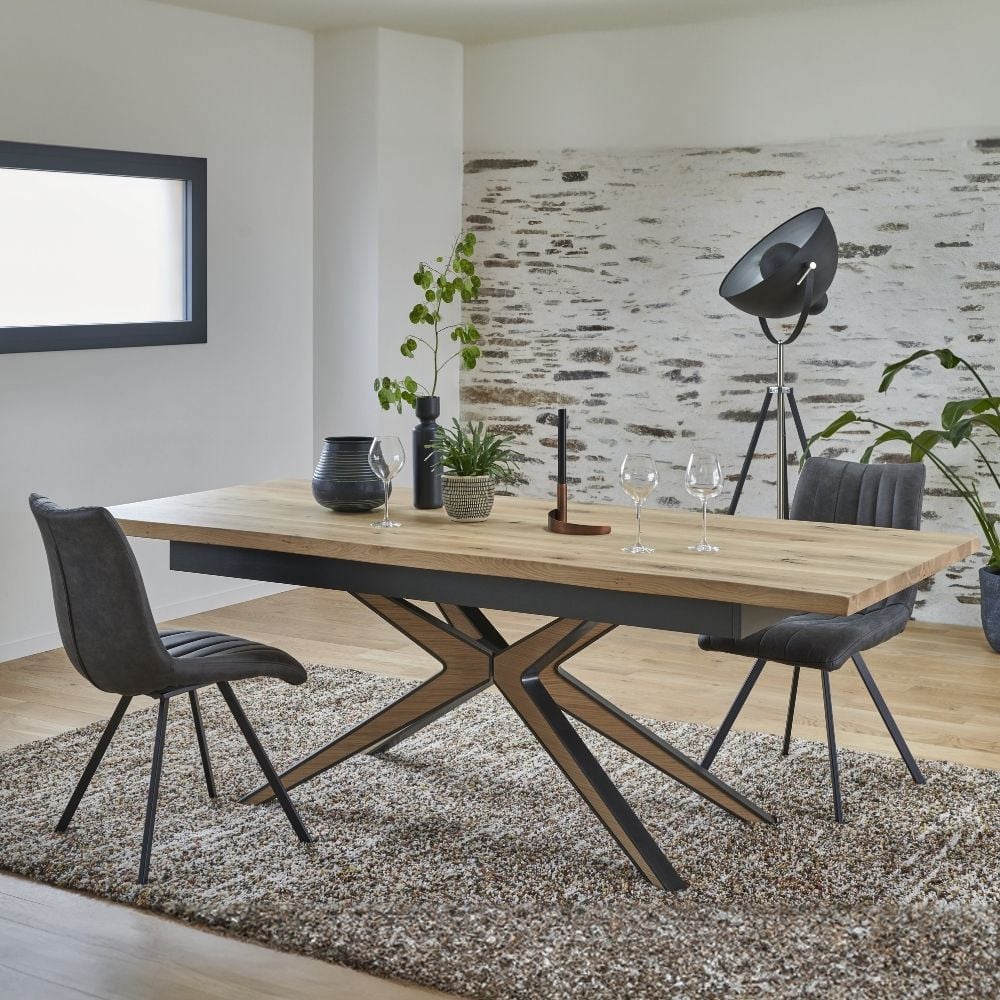 Associée à la collection EDGE, la table de repas extensible TULSA se distingue par ses 2 pieds forme X en bois bordés de métal pour un style indus du plus bel effet. Aussi pratique qu’esthétique, son allonge intégrée de 90 cm vous permettra de recevoir jusqu’à 10 à 12 personnes.