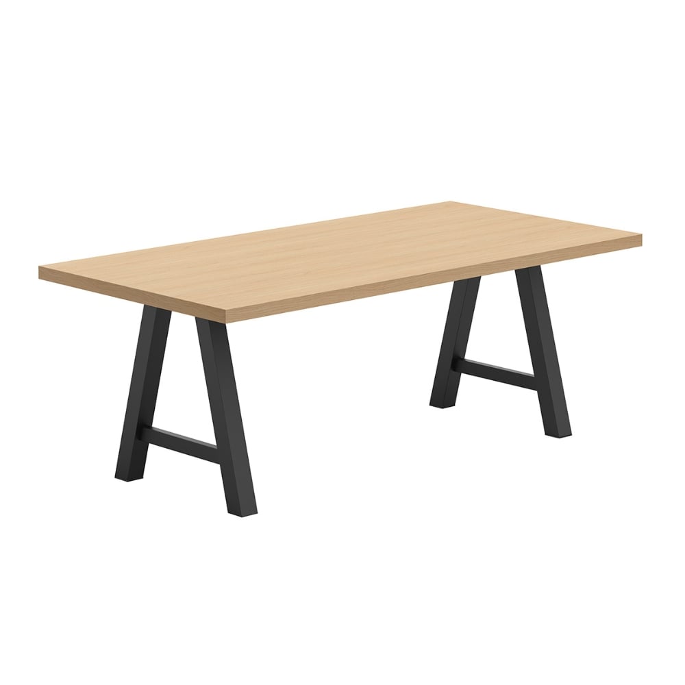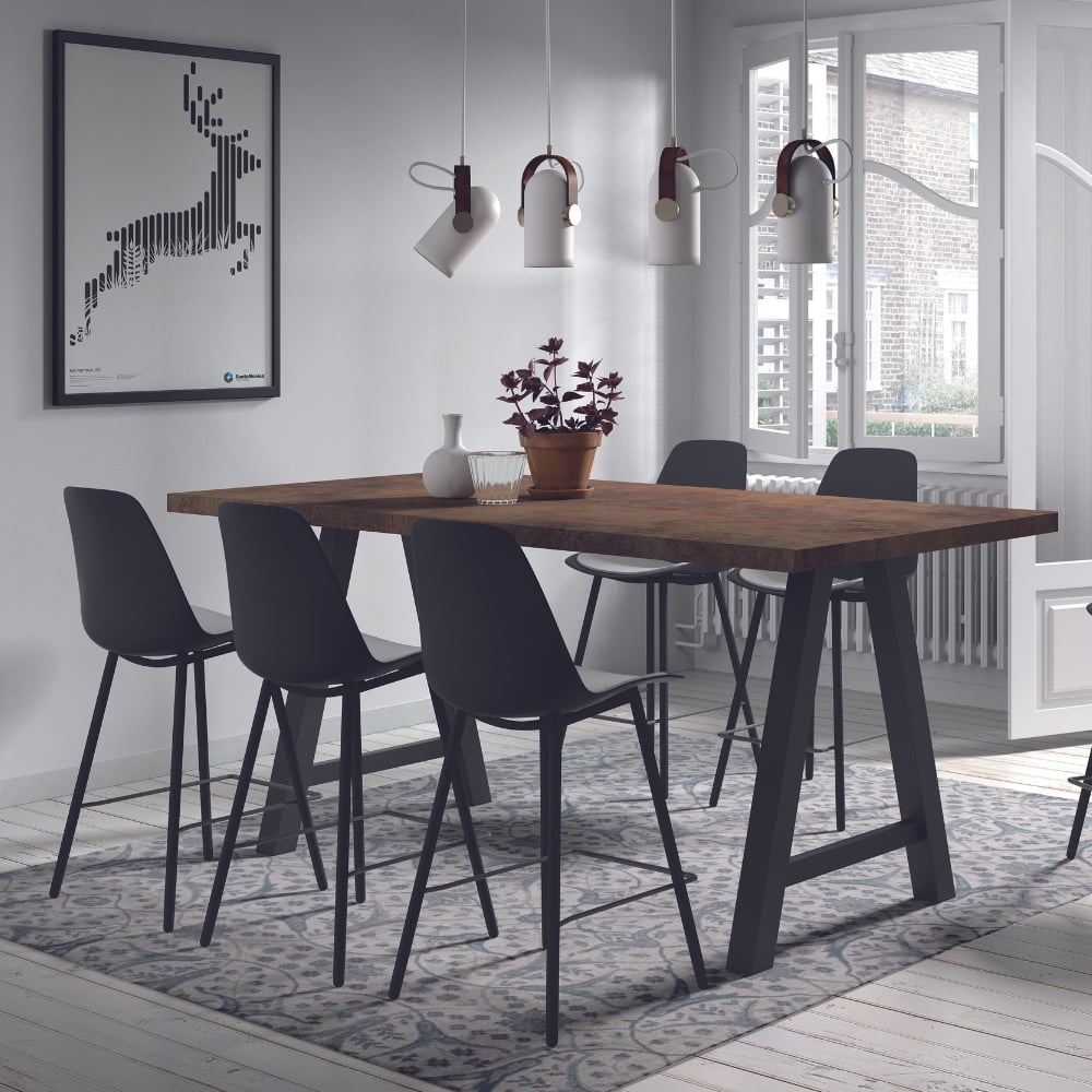 À mi-chemin entre l’esprit atelier et loft, la table haute bois clair QUEBEC s’impose comme un modèle envisageable pour faire de votre séjour un parfait exemple du style indus si plébiscité et intemporel. Son piètement métal noir rappelle sans équivoque la forme d’un tréteau, et sa hauteur de 90 cm permet un usage qui change, où les tabourets de bar seront de mise. Si vous avez envie de changer d’une table de repas classique, jetez votre dévolu sur ce modèle, et personnalisez-le pour le faire correspondre à vos goûts grâce à ses multiples possibilités de plateaux et de coloris de piètement.