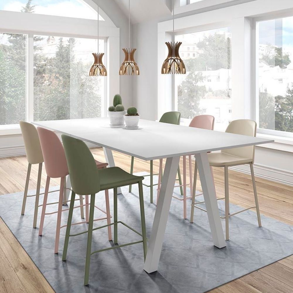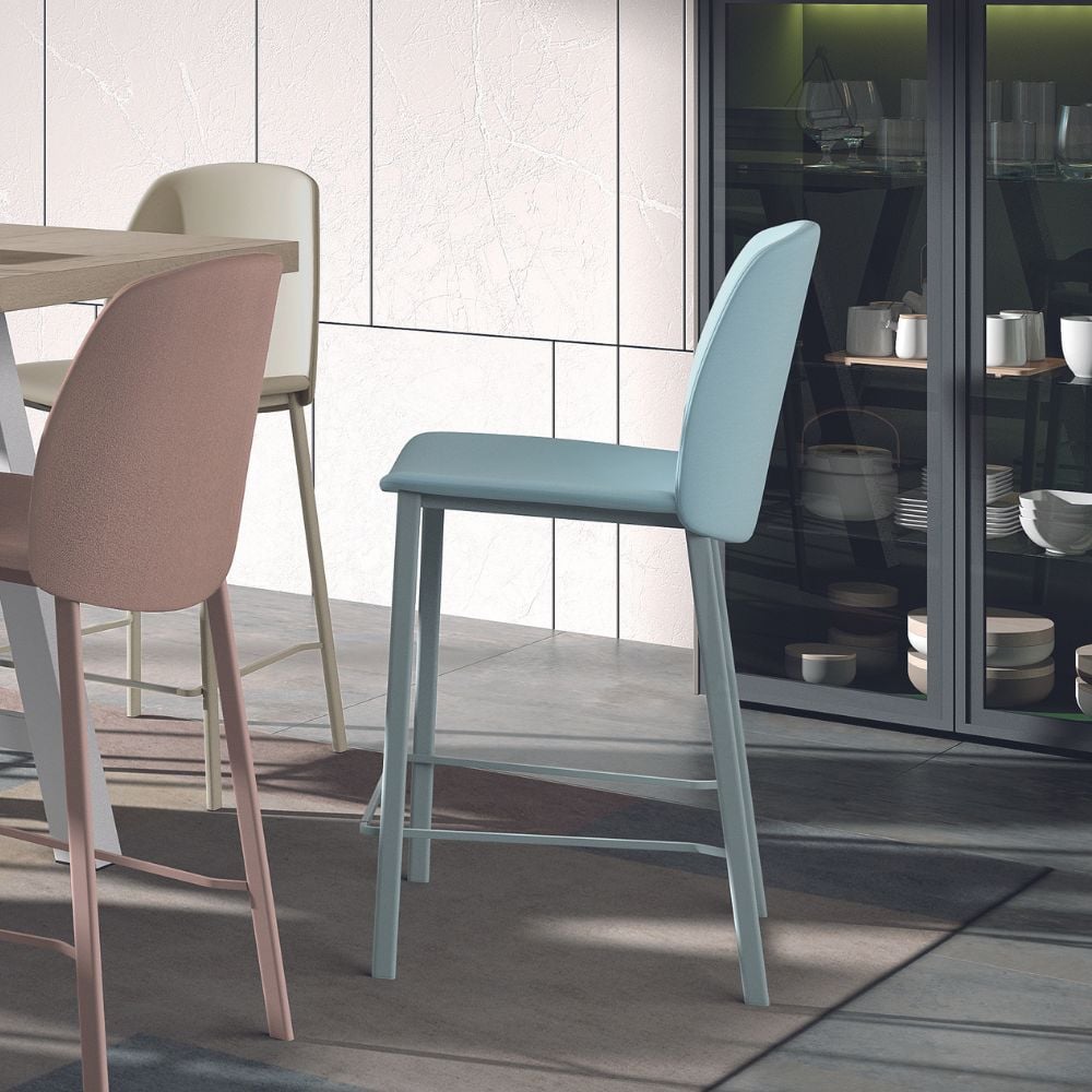 Structure métal epoxy – Composition mousse polyester – Pieds métal 16 coloris au choix – Hauteur assise 65 cm – Existe en plusieurs tissus et coloris (71 possibilités) – Existe aussi en 80 cm de hauteur.