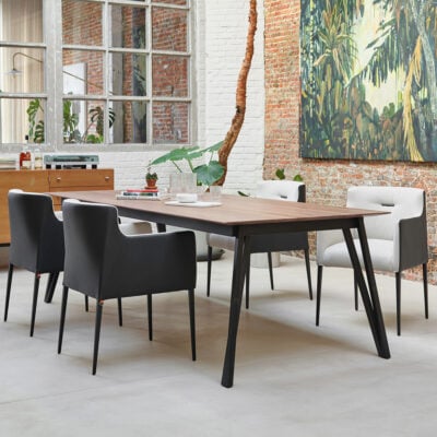 D’une composition notable, la table de repas rectangulaire BRUYERES s’imposera comme l’élément majeur de votre séjour. En effet, elle assemble avec harmonie un piètement singulier en métal, et un beau plateau de chêne massif réhaussé d’un insert béton en guise de chemin de table. Riche de ses multiples variantes, vous pourrez choisir les dimensions qui vous correspondront le mieux entre 3 profondeurs, 8 largeurs, et des possibilités d’allonges. Tout pour faire de ce meuble une pièce maitresse, garante de l’identité indus et moderne de votre intérieur, comme tout droit sortie d’un atelier sur mesure !